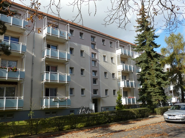 Das viergeschossige Gebäude ist von großzügigen begrünten Freiflächen umgeben. Ein Kinderspielplatz, Sitzgelegenheiten und ein Trockenplatz sind vorhanden. Die Wohnlage ist sehr ruhig. Der ÖPNV, das Stadtzentrum, Einkaufsmärkte, Ärzte sind in 10 Gehminuten erreichbar.