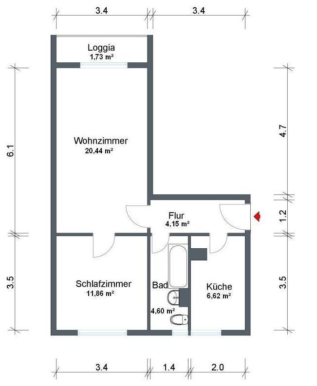 Dieser Grundriss basiert auf ungefähren Größenangaben. Gewisse Abweichungen von den angegebenen Maßen können vorkommen.