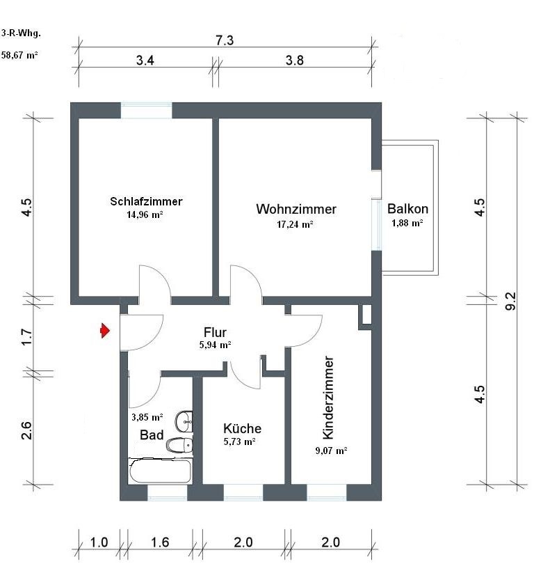 Dieser Grundriss basiert auf ungefähren Größenangaben. Gewisse Abweichungen von den angegebenen Maßen können vorkommen.