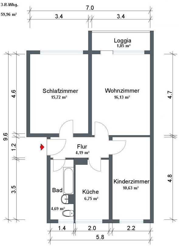 Dieser Grundriss basiert auf ungefähren Größenangaben. Gewisse Abweichungen von den angegebenen Maßen können vorkommen.
