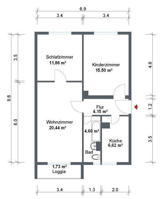 3-Raum-Wohnung, 4. Etage